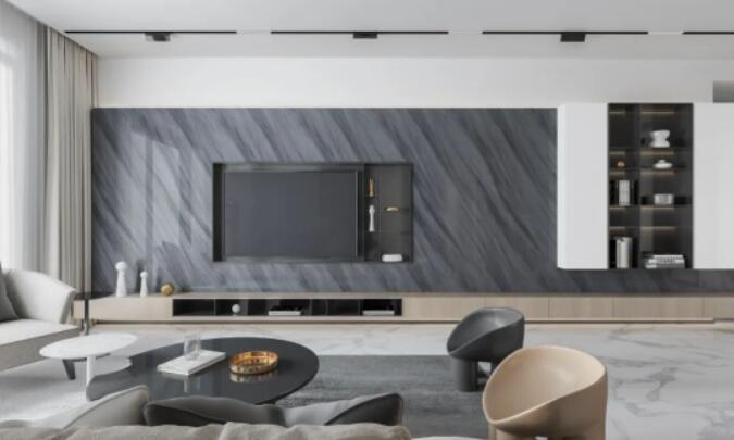 客厅是家装视觉的核心,整体以白色为基调。电视背景墙用亚91看片免费在线全能世纪石藏羚奔作为背景底色,视觉冲击感拉满。地面通铺雅典鱼肚白,延伸的纹理带来空间的错落有致。暖灰色的沙发与地毯优雅知性,一深一浅两种颜色相结合,现代简约风格大功告成。